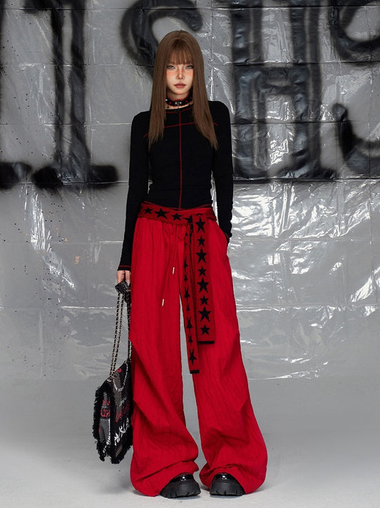 Red Wide-leg Cut Pants