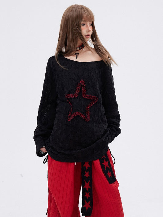 Black Star Long Sleeves Drawstring T-shirt