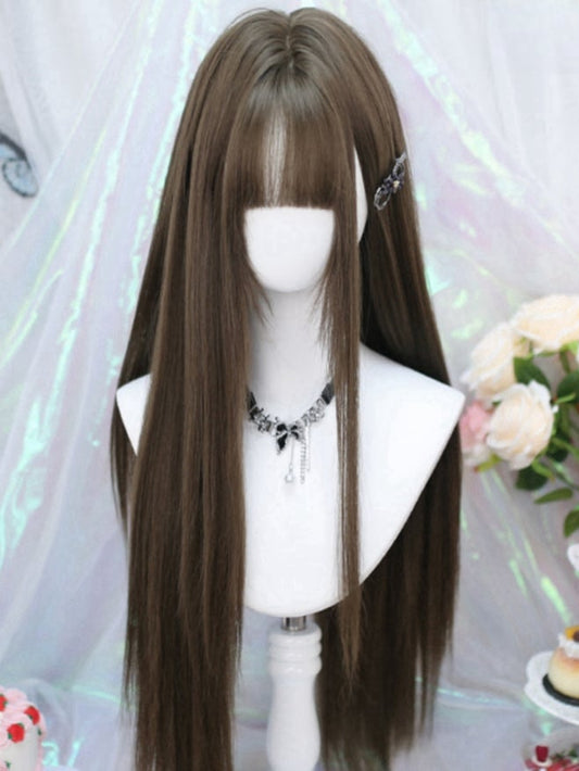 Brown 70-75CM Straight Wig With Air Bangs