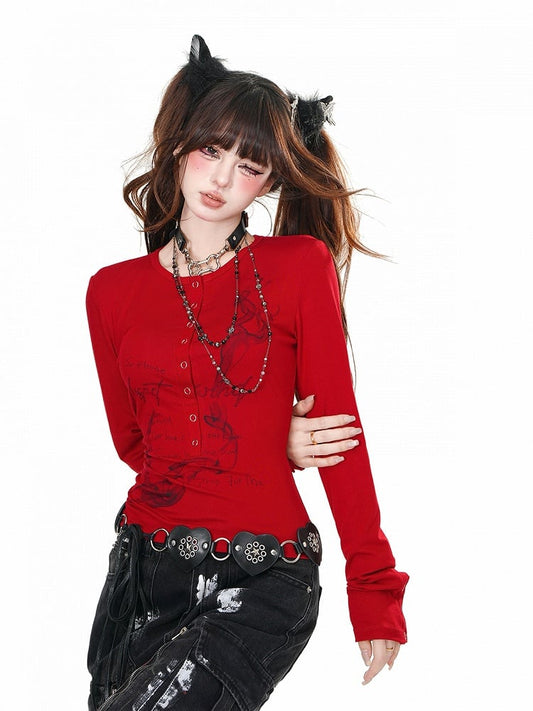 Red/Black Round Neck Slim-fitting Bittersweet Top