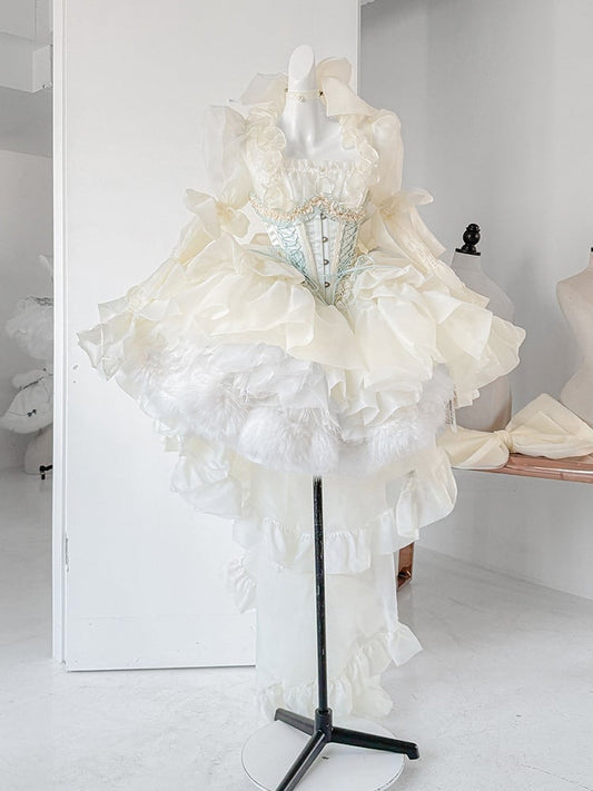 Light Yellow Basque Waist Big Bow Neckline Princess Birthday Dress