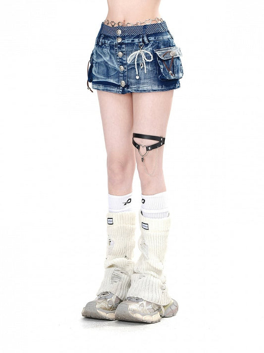 Blue Denim Pockets Silver-tone Buttons Glamorous Slim-fitting Mini Skirt