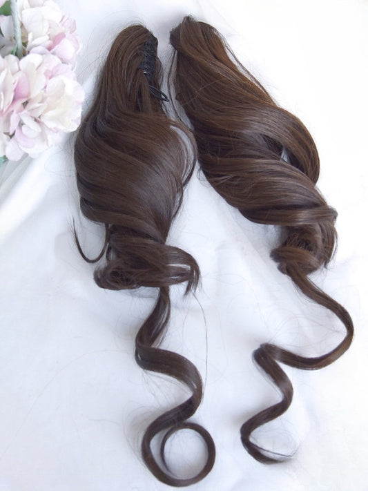 Light Brown Bob Cut Long Curly Ponytail Wig With Bangs