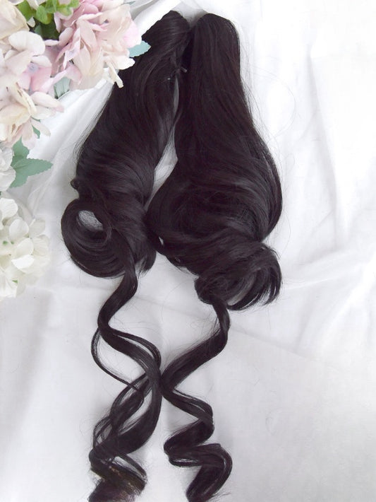 Dark Brown Short Bob Cut Wig With Bangs+Double Curly Ponytail Claw Clips
