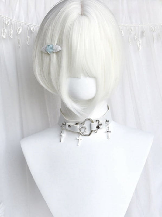 Creamy White Short Bob Cut Wig With Bangs