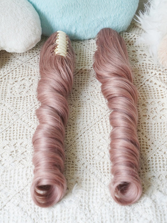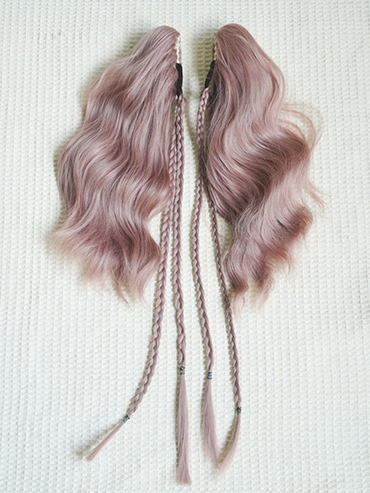Dusty Pink Bob Cut Short Wig With Bangs+Double Wavy Ponytail Claw Clips