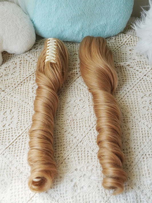 Blonde Bob Cut Short Wig With Bangs+Double Wavy Ponytail Claw Clips