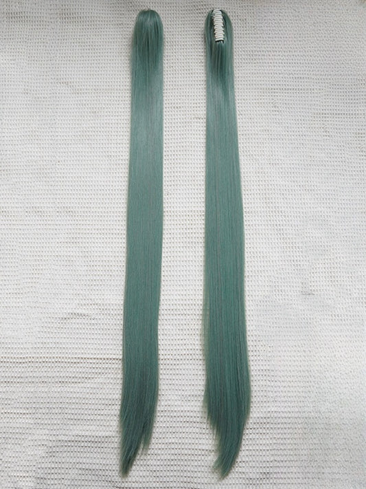 Dusty Green Bob Cut Short Wig With Bangs+Double Straight Ponytail Claw Clips