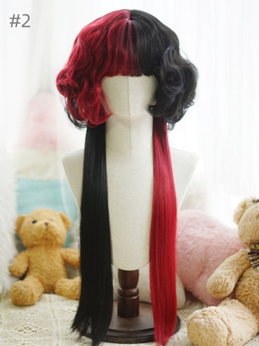 Red/Pink/Green/Purple/Dusty Blue/Orange Long Wavy Wig With Full Bangs