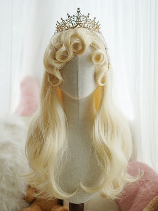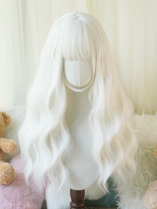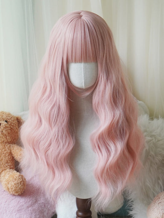 Blonde/White/Brown/Pink/Light Blonde Long Wavy Wig With Curly Bangs