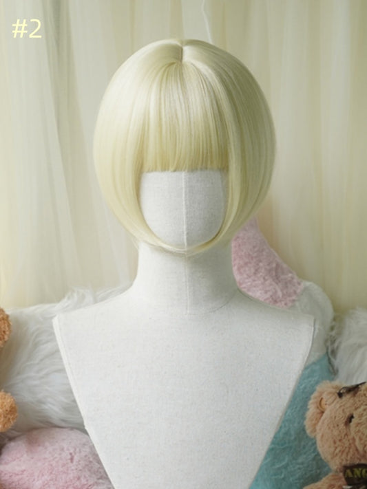Light Blonde Bob Cut Short Wig With Curly/Full Bangs
