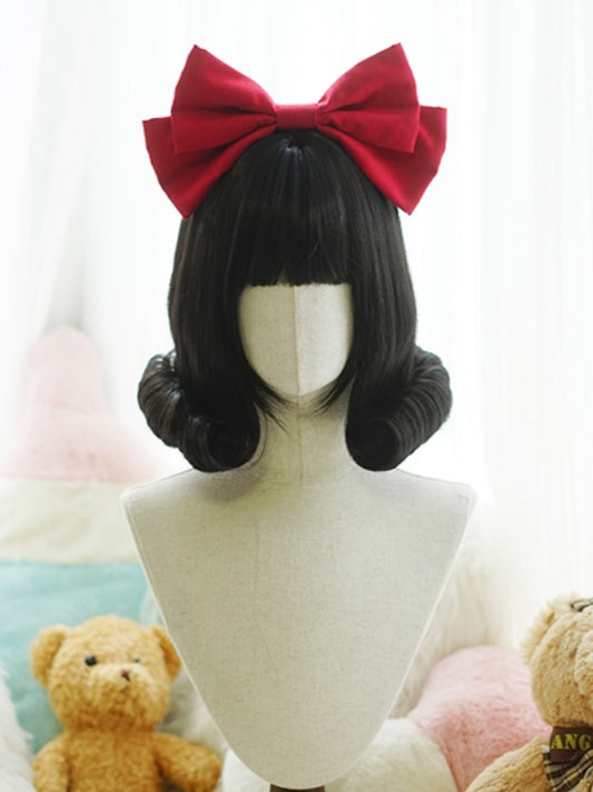 Black Bob Cut Short Wig With Curly/Full Bangs