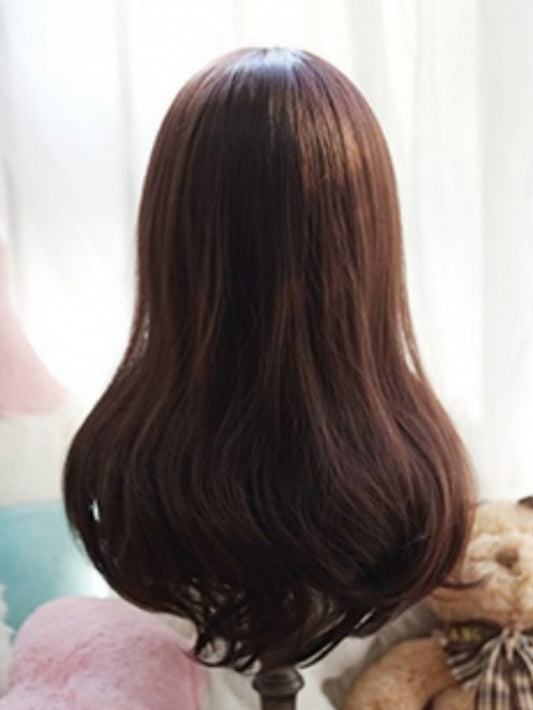 Dark Brown Shoulder Length Wavy Wig With Full Bangs