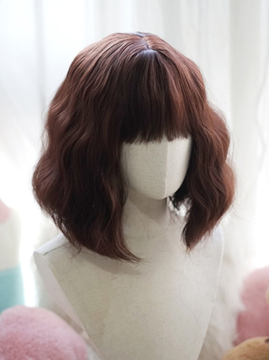 Dark Brown Bob Cut Short Wig With Curly/Full Bangs