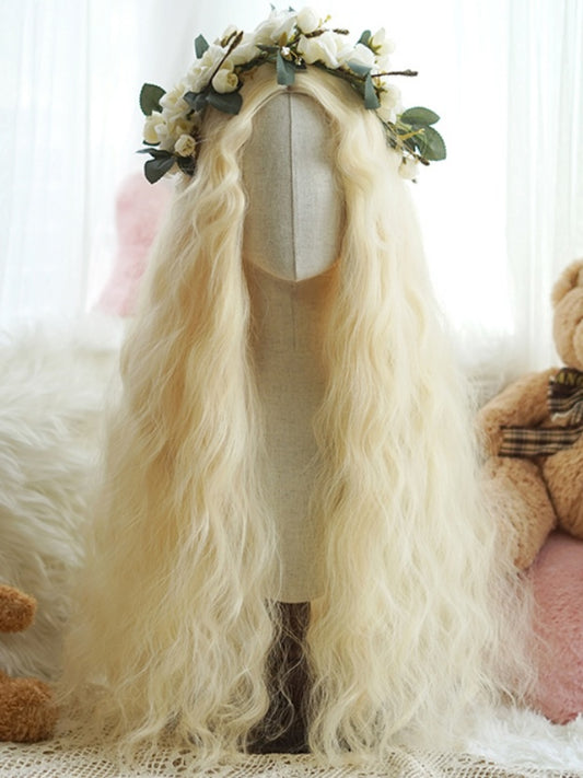 Light Blonde Hip Length Curly Wig With Curly Curtain Bangs