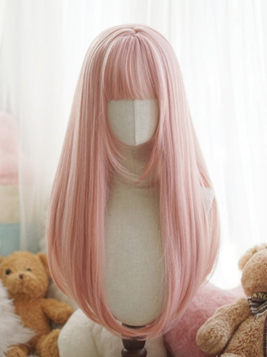 Red/Pink/Green/Purple/Dusty Blue/Orange Long Straight Wig With Full Bangs