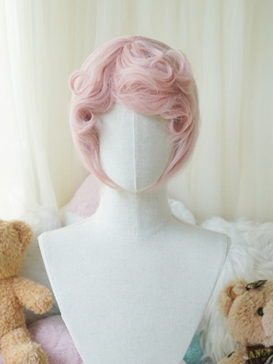 White/Pink Bob Cut Short Wig With Curly Bangs