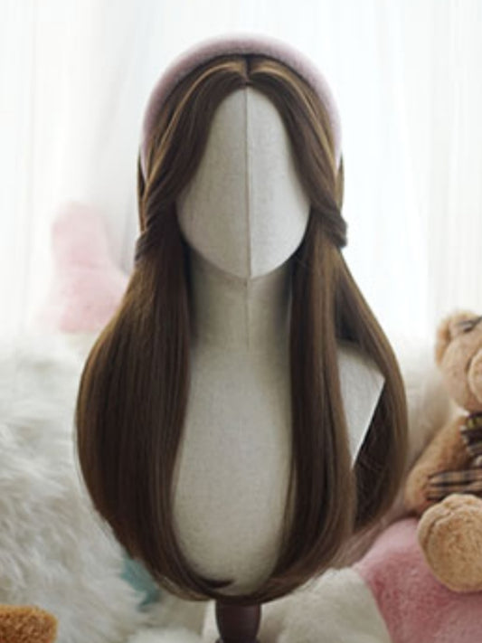 Dark Brown Long Straight Wig With Curtain Bangs