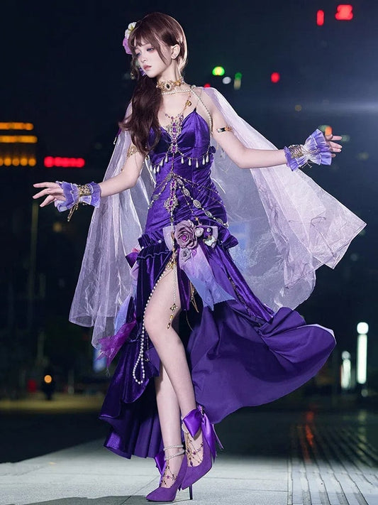 Purple Butterfly Print Cutout Detail Mermaid Skirt Slip Dress