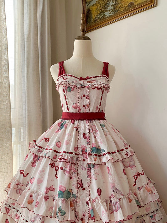 Kitty and Strawberry Print Spring and Summer Cottagecore Lolita Dress