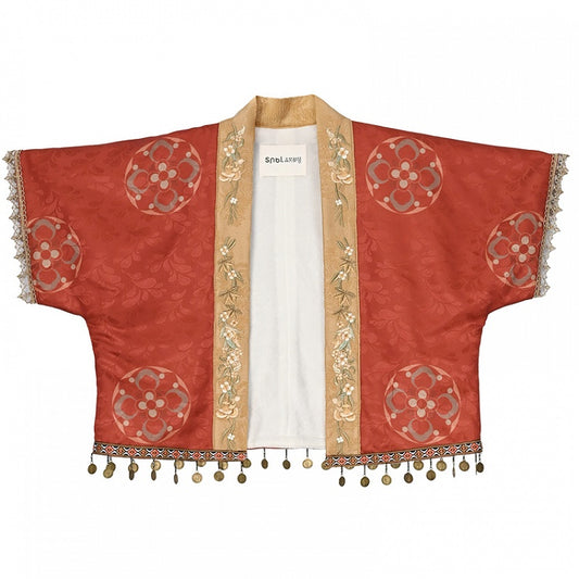 Red Floral Embroidery Open Placket Cheongsam Style Top