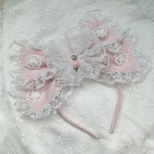 Pink Hanayome Rosette Embroidery Floral and Bead Chain Details Lolita OP Full Set