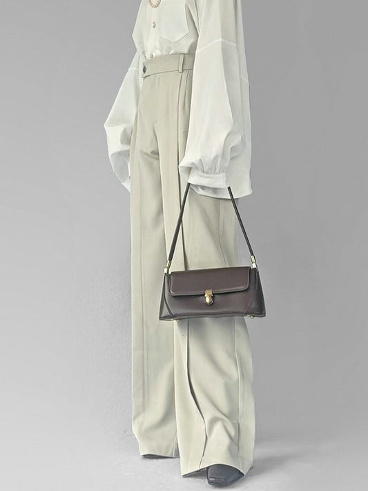 Front Slant Pants Design Wide-leg Coffee Brown with Lolita High-waist Ouji Pockets