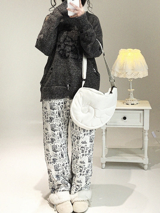 Casual Jirai Kei All-Over Pants Cuff Cartoon Plush Doodle