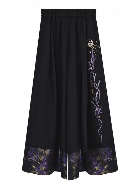Pattern Taiji Leaf Cheongsam Style Wide-leg Pants Symbol - Embroidery Bamboo Black