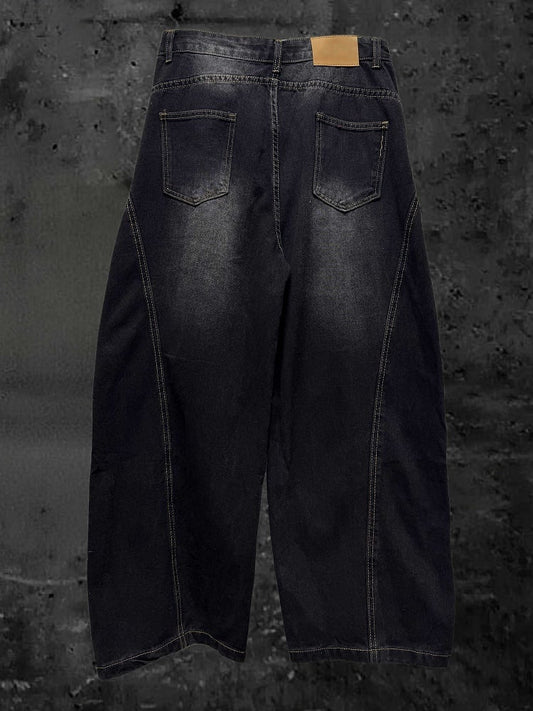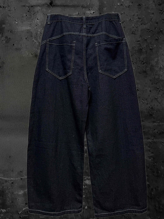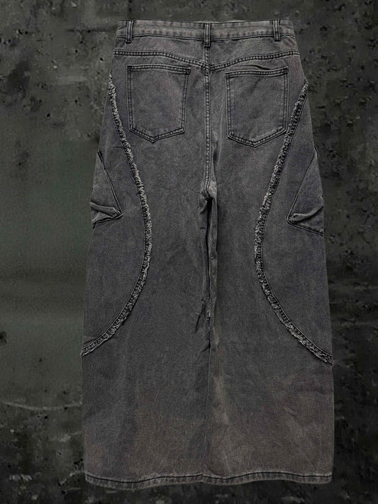 Raw Cross with Wide-Leg Grey Detailing Wasteland Hem Jeans Punk Y2K
