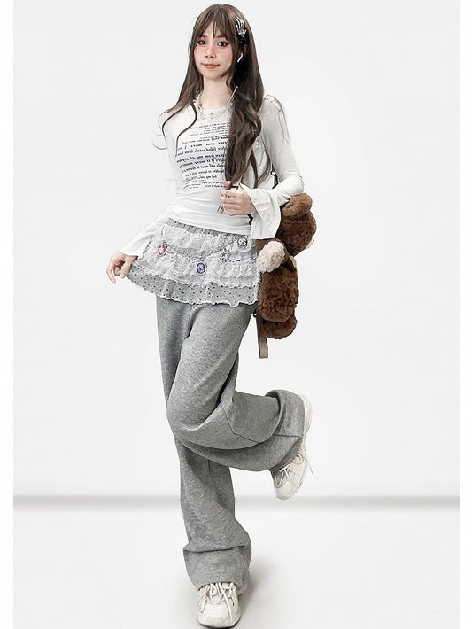 Polka-dot Pants Trim Y2K + Lace Skirt Tiered Cut Bittersweet Pattern Gray Wide-leg