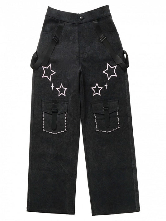 Straps with Dark Print Gray Jeans Stars