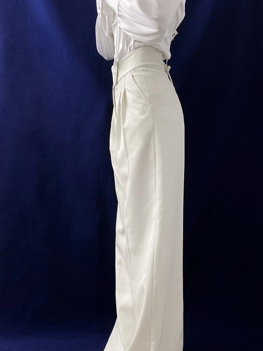 Two-pieces Waist Handkerchief Hem Wide-leg Pants White Low Faux