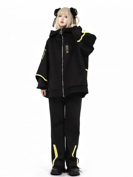 Straight-leg Cargo Black Double Zippers Drawstring Cuffs Pants