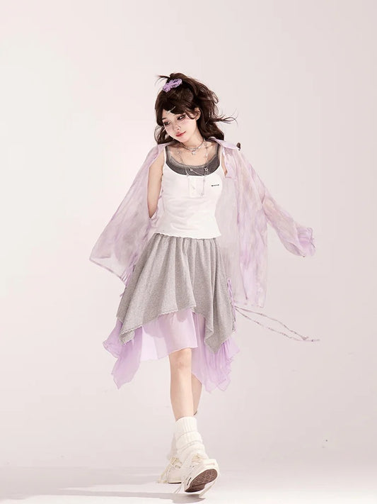 Light Waist Wide-leg Casual Loose Shirt / Pants Purple Drawstring