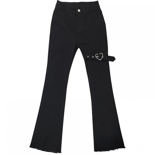 Buckle Waist Studded Cuffs Flared Pants with Black Low Belt