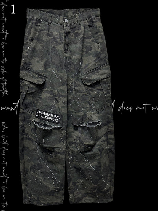 Wide-Leg Cargo Army Green Pattern Pants Camo