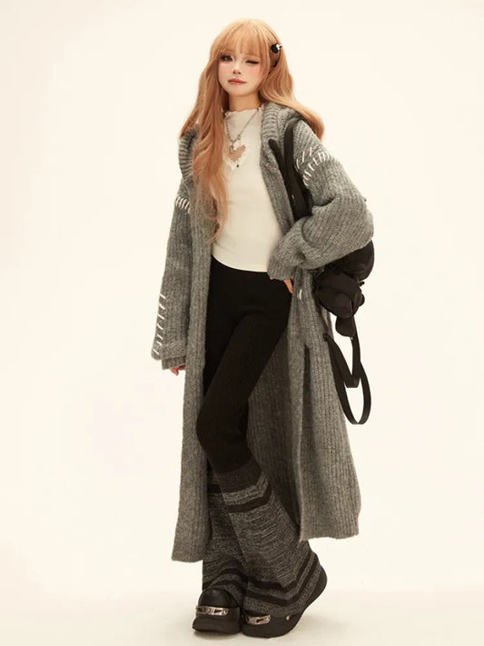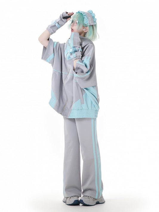 and Green Stripes Jirai Kei Sweatpants Gray