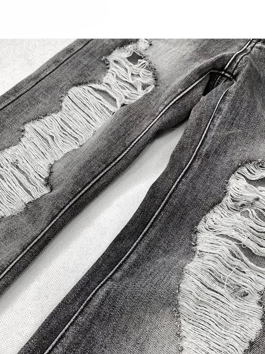 Bittersweet Gray Distressed Details Flare Jeans Holes Silhouette