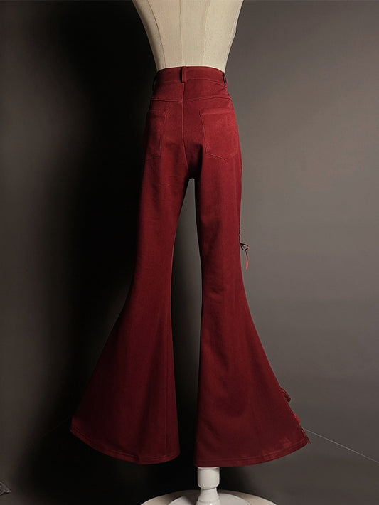 Pants Cuffs Red Lace Tiered Patches Flared