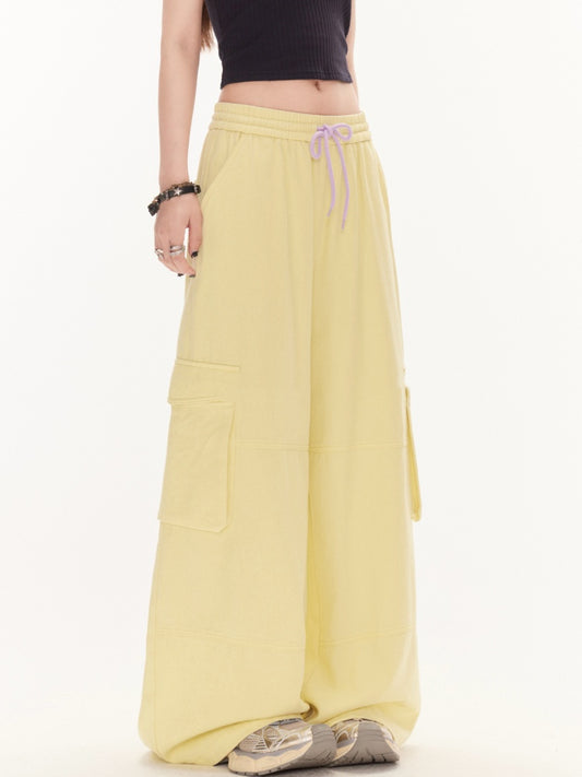 Yellow Drawstring Waist Wide-Leg Cargo Pants