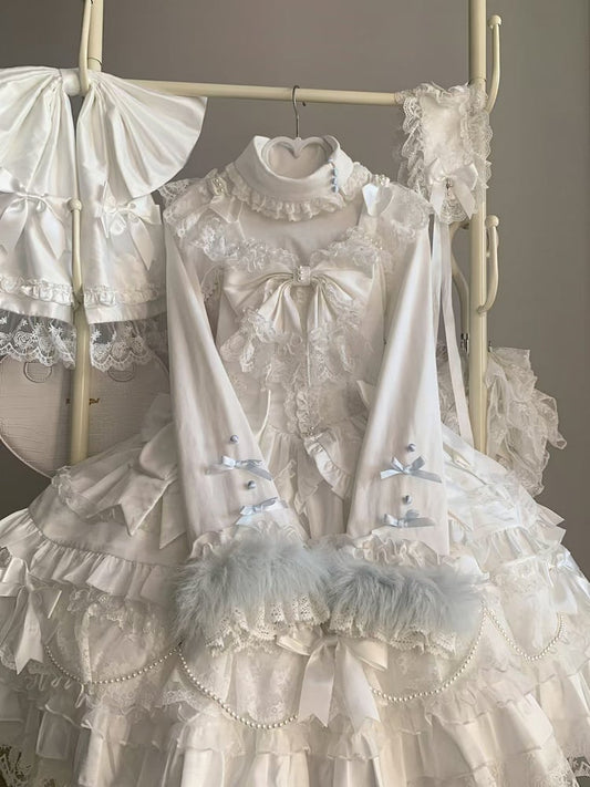 Lolita Top Knit Sheep Winter and Print Set Sleeves Dress Cloud Sweet for Autumn Purple +