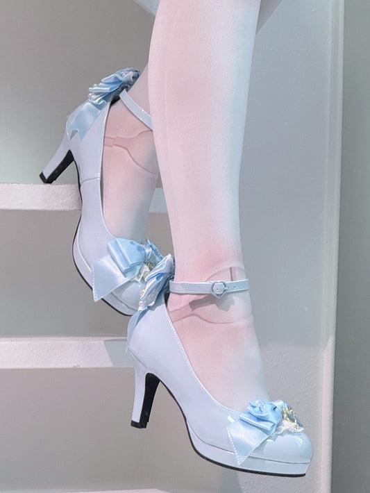 Lolita Baby Top Blue Platform Bow Sweet at Crisscross Buckle in Mary Straps Janes -