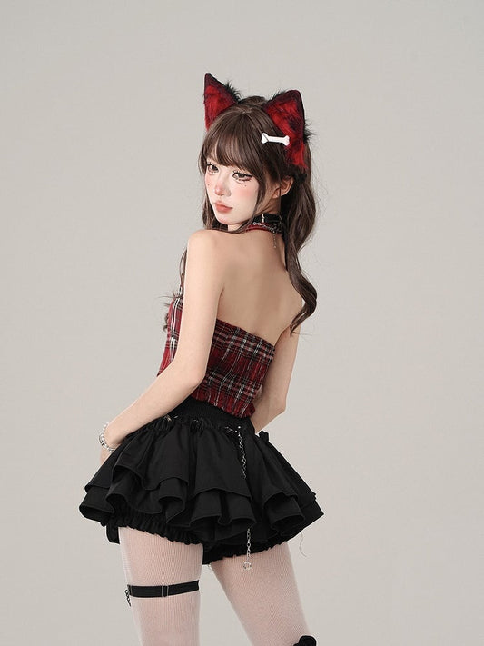 Red Plaid Halter Neck Crop Tank Top - Adorable Slimming