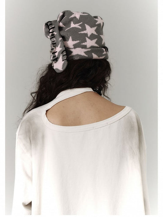 Punk Star Black Striped Top Pins Sleeves and Loose Gray Long
