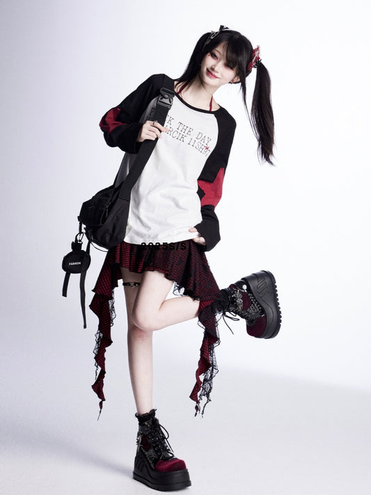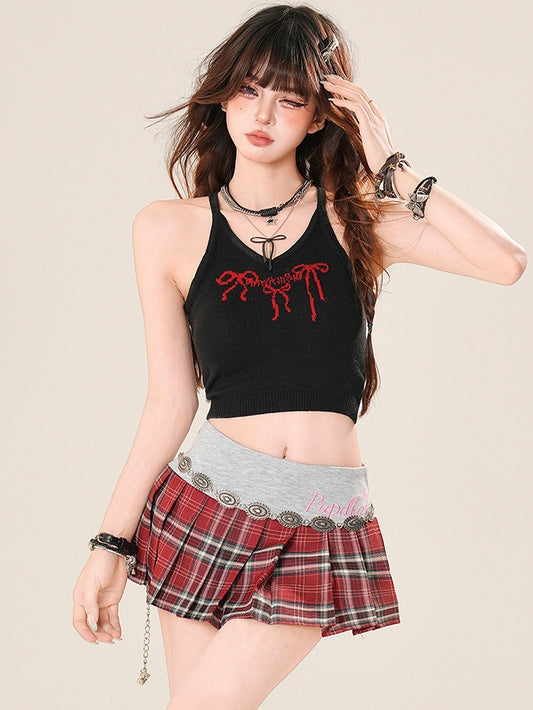 Red/Gray Tank Top with Halter Neck Coverup Set Graphic Black Y2K Cropped