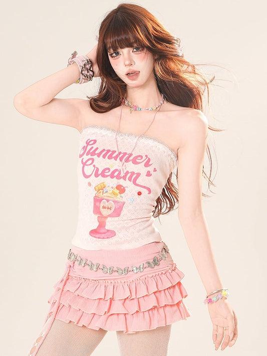 Cake Letter White/Pink Lace Tube And Glamorous Top Print Trim