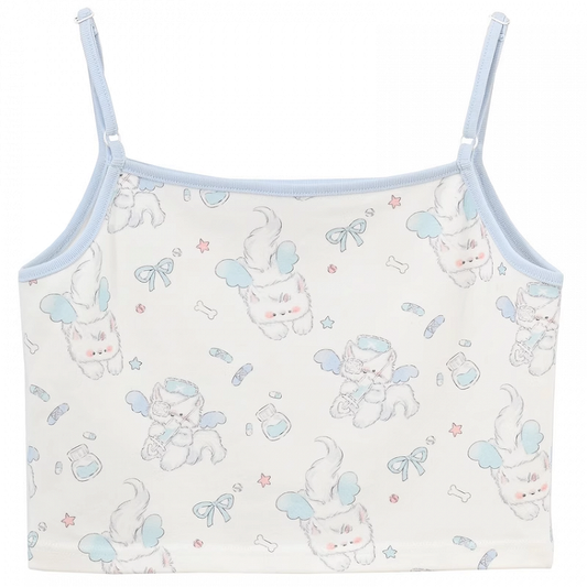White Kitty Pattern Bittersweet T-shirt/Cami Top