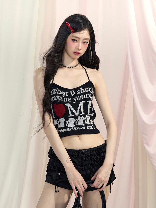 Letter Cropped Top Print Glamorous Pink/Black/Apricot Halter Neck