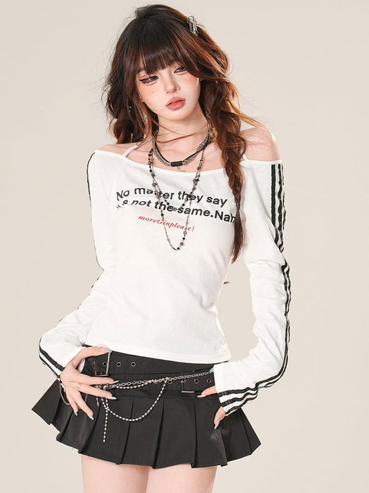 Neckline Off-the-shoulder Sleeves Letter Print Top Bittersweet Black/White Long Glamorous